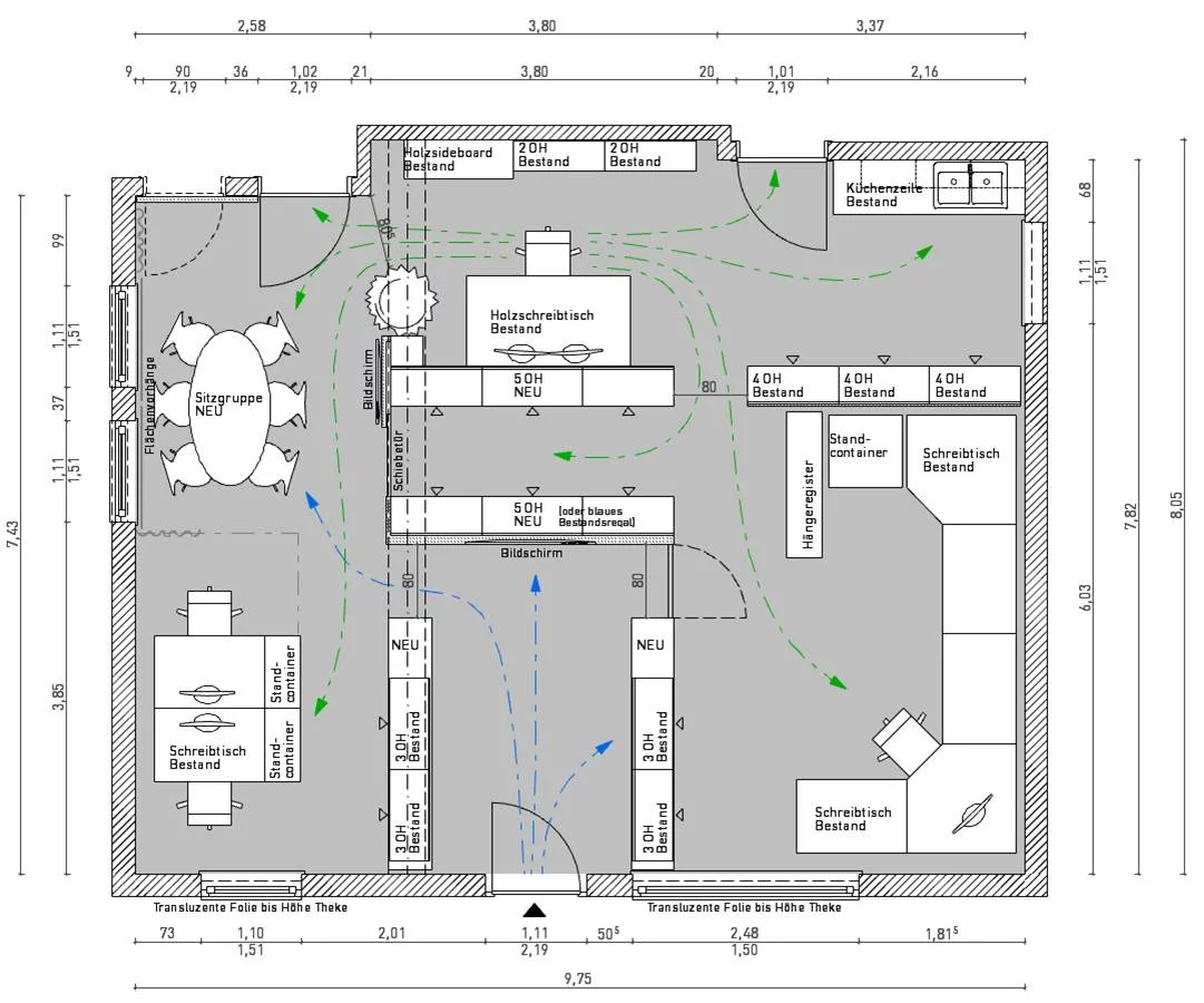 Neue Raumstruktur und Gestaltung der Büroräume ca. 74 m²