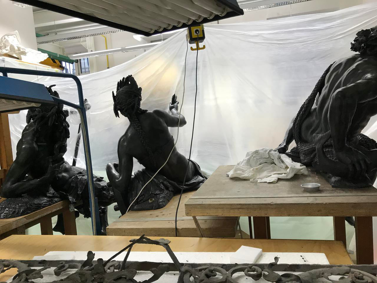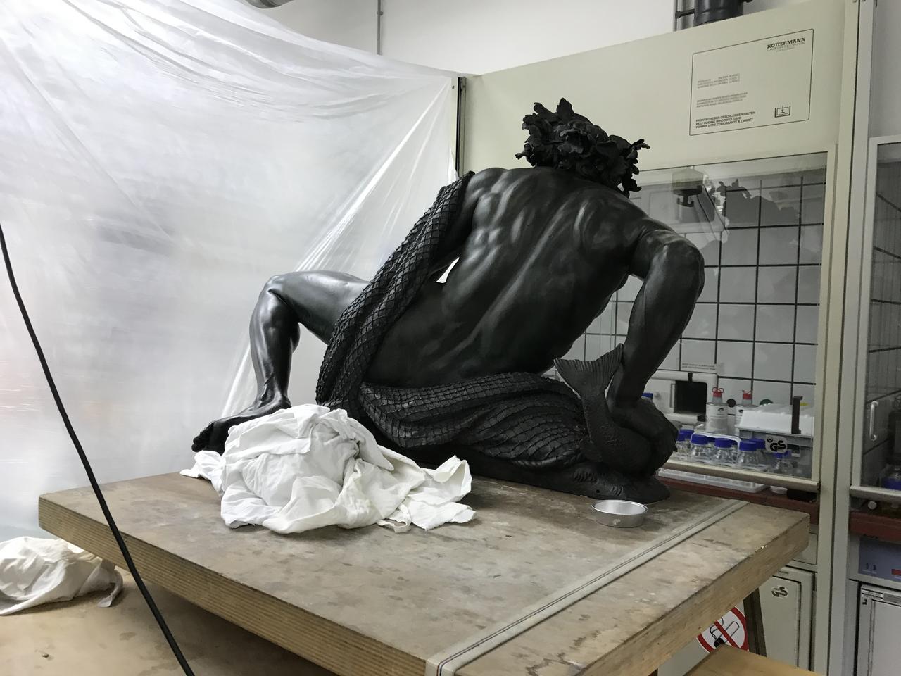 Neuaufstellung der Brunnenfiguren des Augustusbrunnens im Maximilian Museum