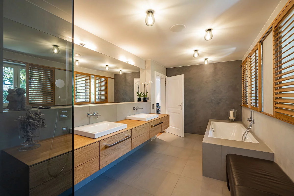 Leistung: Fassaden, Innenausbau und Inneneinrichtung einer Privatvilla sowie Planung der Außenanlagen mit Terrasse, Pool, Außensauna, Sichtschutz, LPH 1-8